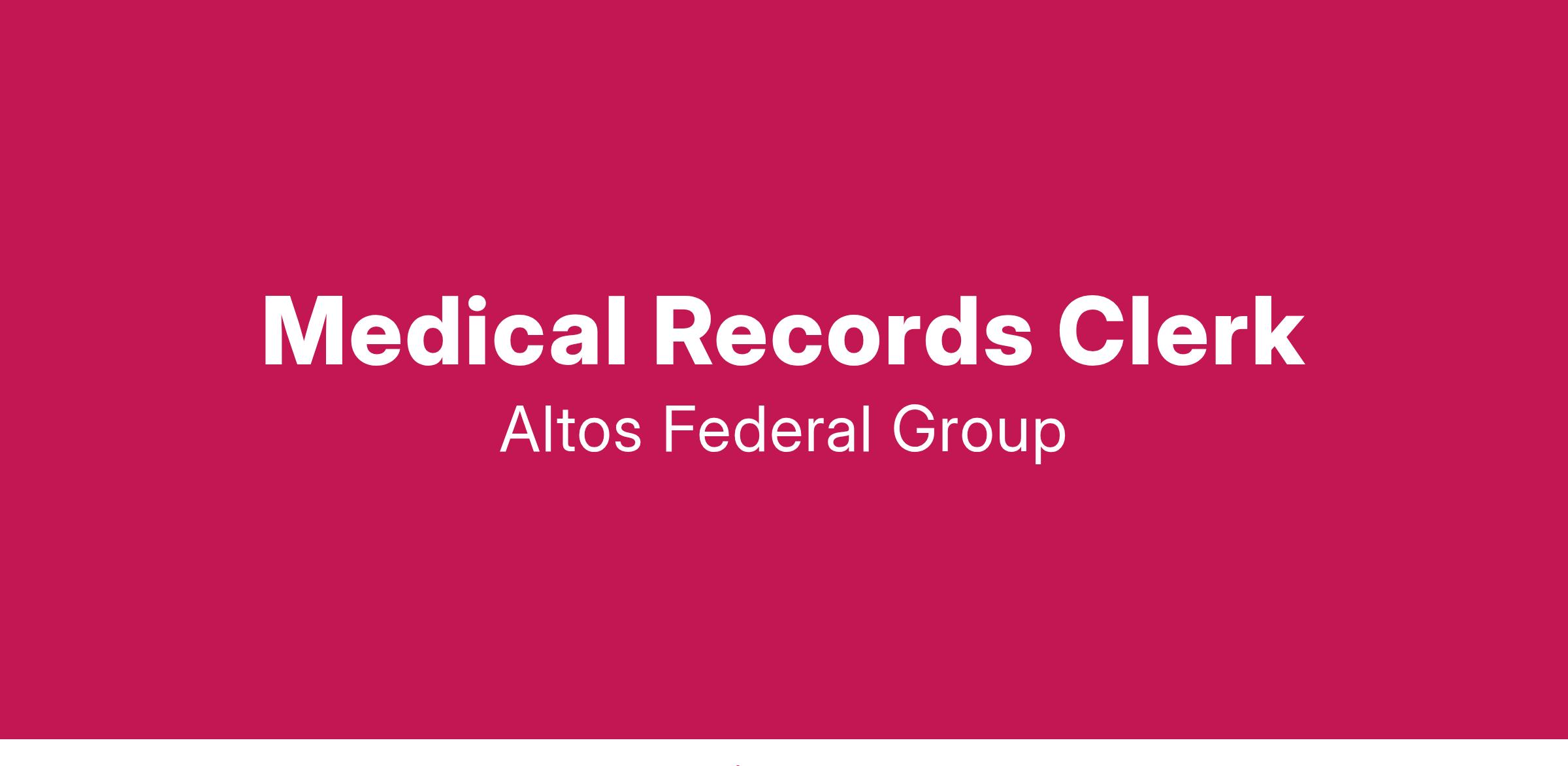 Altos Group is seeking a qualified Medical Records Clerk to provide services at the Court Services and Offender Supervision Agency, Re-entry and Sanctions Center, a residential facility that provides intensive assessments and reintegration programming for high-risk offenders and defendants with extensive substance abuse histories in Washington DC.