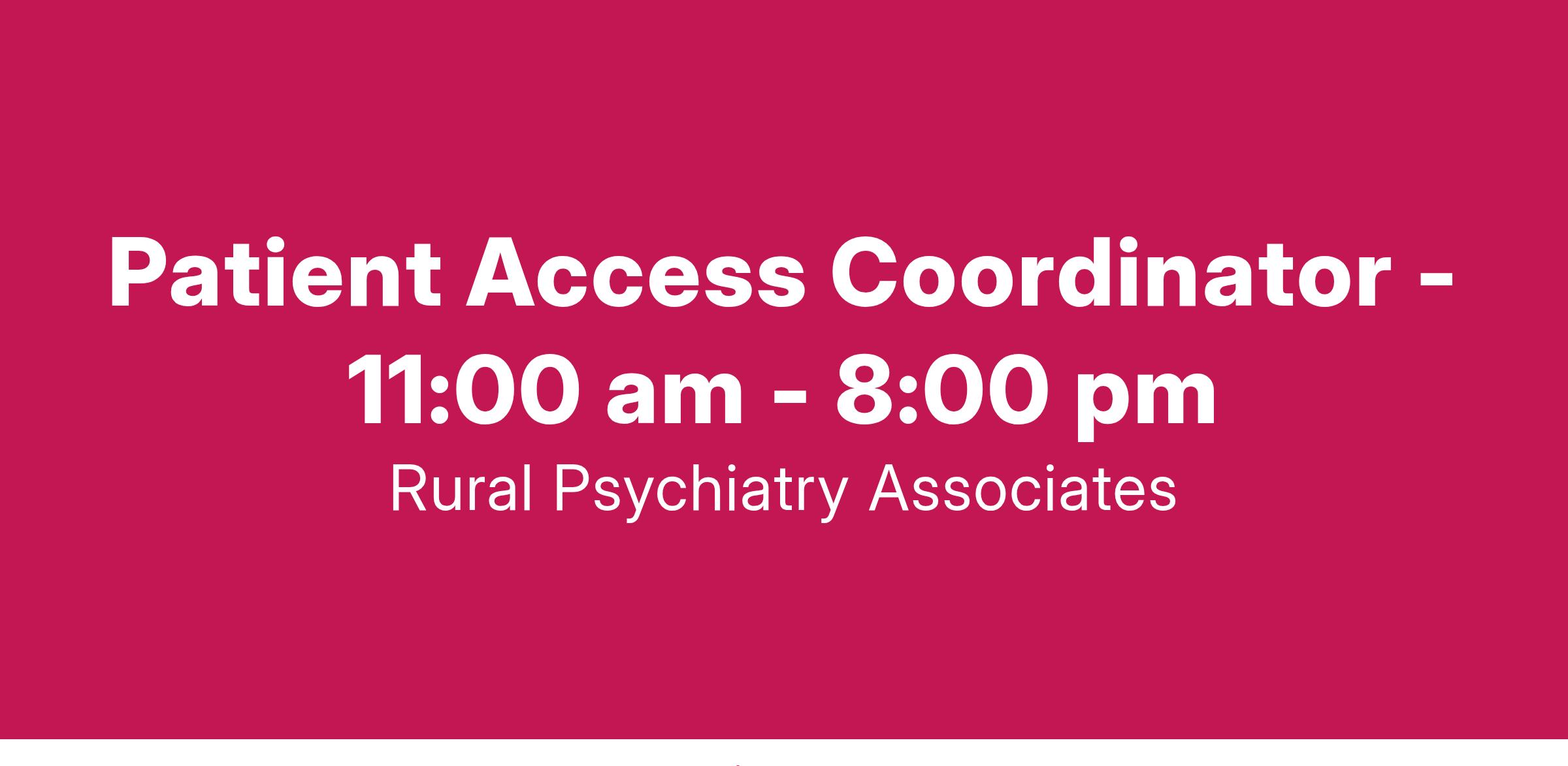 Patient Access Coordinator - 11:00 am - 8:00 pm